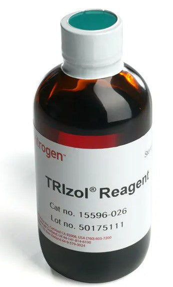 Reactivo TRIzol™ Invitrogen para la extracción rápida y eficiente de ARN, ADN y proteínas. Alta pureza y rendimiento confiable para aplicaciones de biología molecular. Presentación de 100 mL.